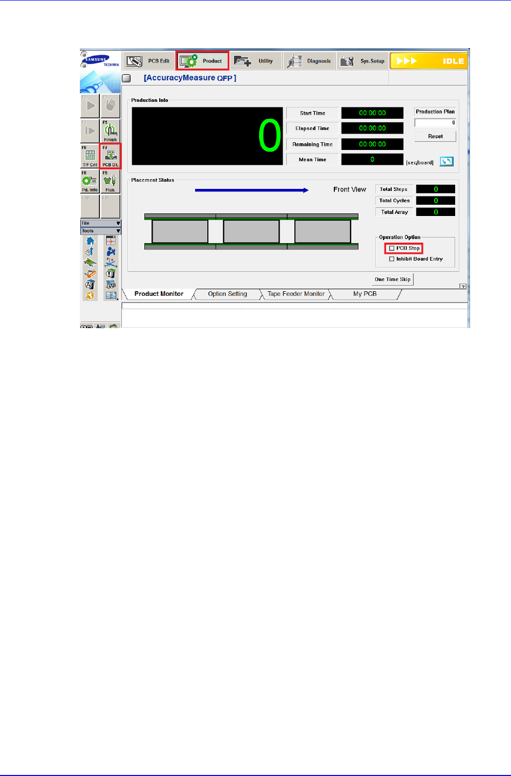 18. 勾选<Operation Option>项目的<PCB Stop>后,点击<PCB D/L> → <Start>,将零件安装