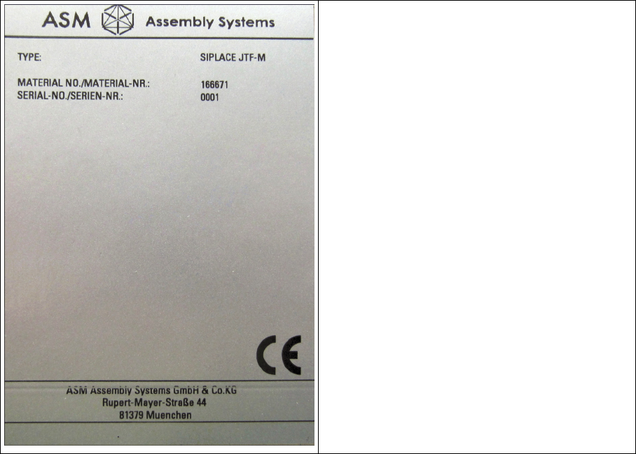 Auf den Zuführmodulen ist auf der Seite ein Typenschild angebracht, auf dem der Typ, die Material- und