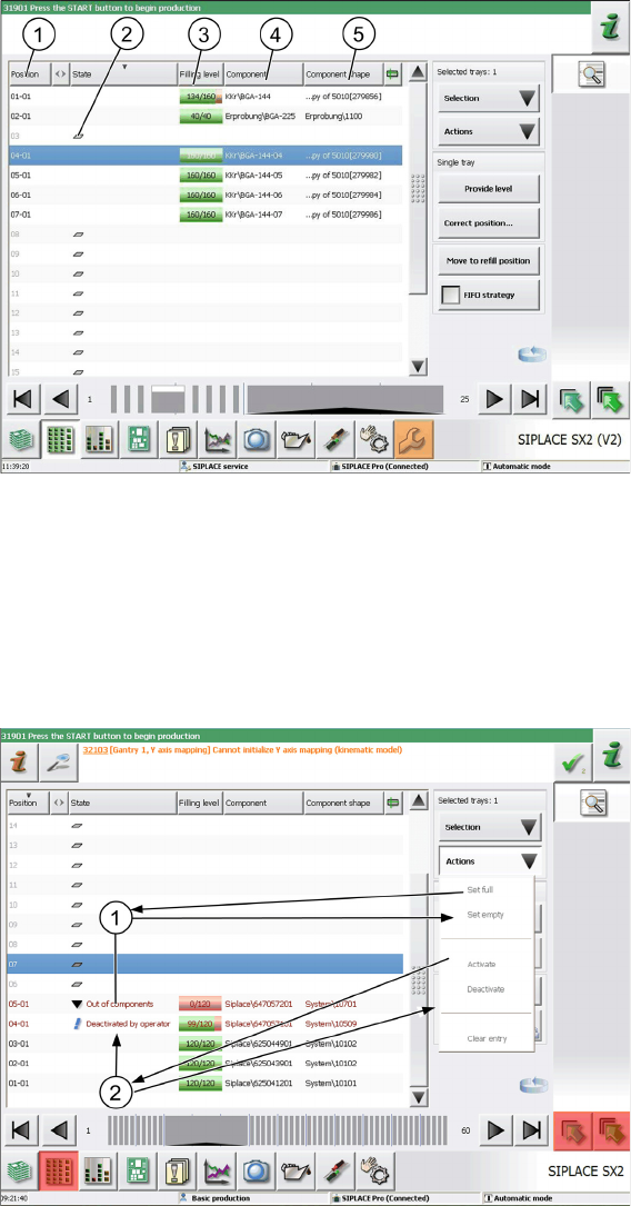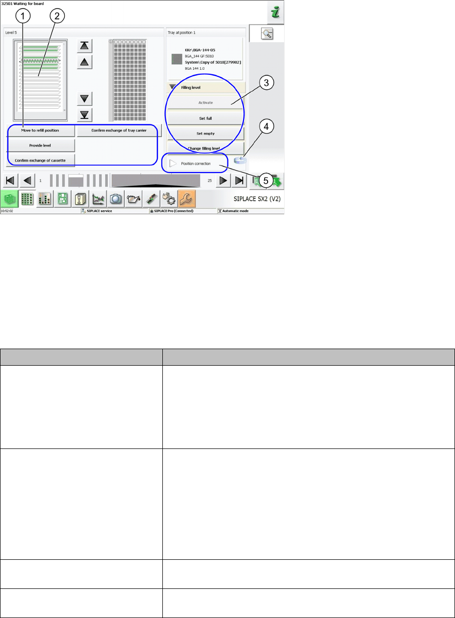 Tasks for SIPLACE JTF-S, SIPLACE JTF-M 5.2.2 Operating the JEDEC Tray Feeder in the Station Software (SW707) Controls and Displays JEDEC Tray Feeder 155 Filling Level Functions fo r the Selected Tray (3) Change filling l…