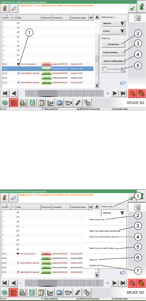Tasks for SIPLACE JTF-S, SIPLACE JTF-M 5.2.2 Operating the JEDEC Tray Feeder in the Station Software (SW707) Controls and Displays JEDEC Tray Feeder 157 2. Deactivate : Deactivates the complete t ray which is then marked…