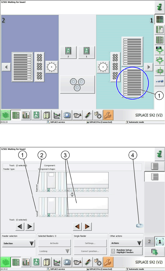 Aufgaben am SIPLACE JTF-S, SIPLACE JTF-M 5.2.2 Bedienung JEDEC Tray Feeder in der Stationssoftw are (SW70 7) Bed ien- und Anzeigeelemente JEDEC Tray Feeder 73 Bei SIPLACE X-Serie S: Beispiel SIPLACE X4 S -Ste llplatz 2 =…