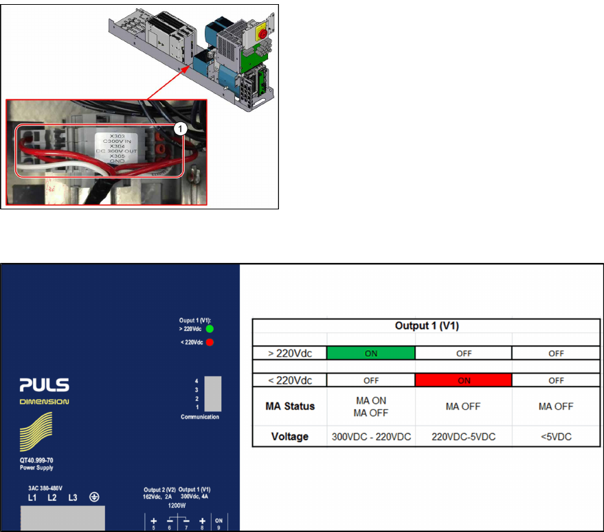 The following figure explains the LED status of the PS1 power pack (300 VDC):