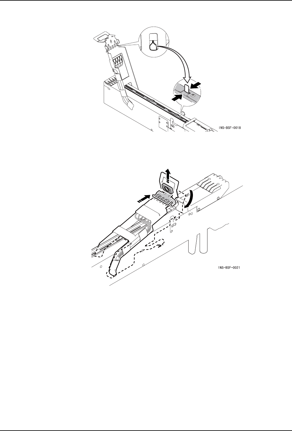 8. 垂直提起防止移动杆,同时向后方滑动水平方向的锁定杆。在此状态下,将元件导盖关