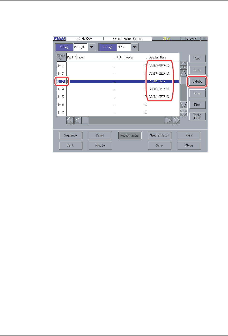 1. 请选择作为删除对象的传送带式管装供料器的中心部,按下 [Delete] 按钮。包括左右
