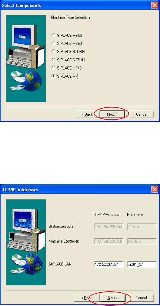 → Enter the IP addresses of the computers in your SIPLACE placement station.