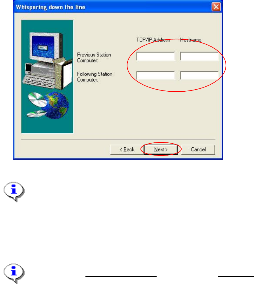 → If you intend to use the Whispering Down the Line option, you must enter the IP addresses