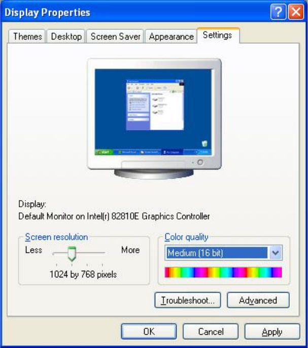 → Wählen Sie Start Æ Settings Æ Control Panel Æ Display.