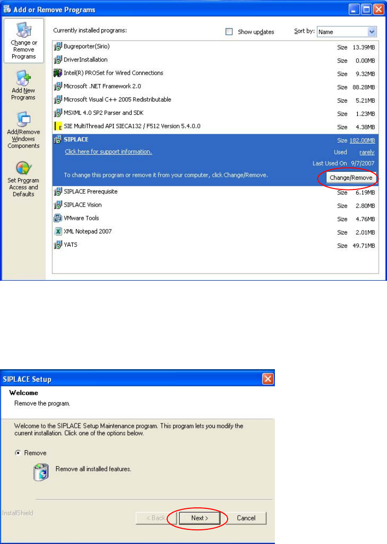 → Select SIPLACE from the list of installed programs.