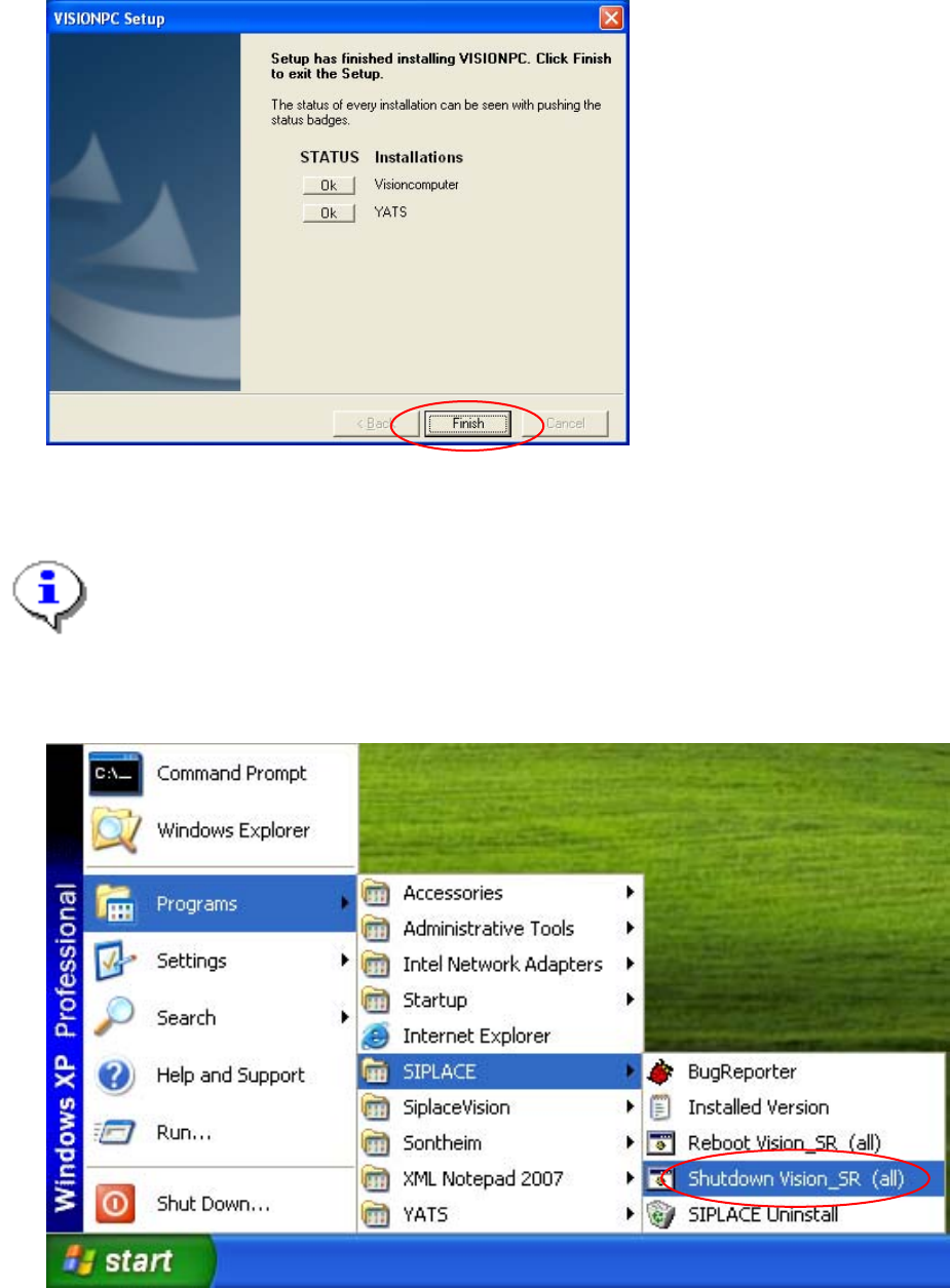 → To do this, open the Start menu and choose Programs Æ SIPLACE Æ Shutdown Vision_SR (all).