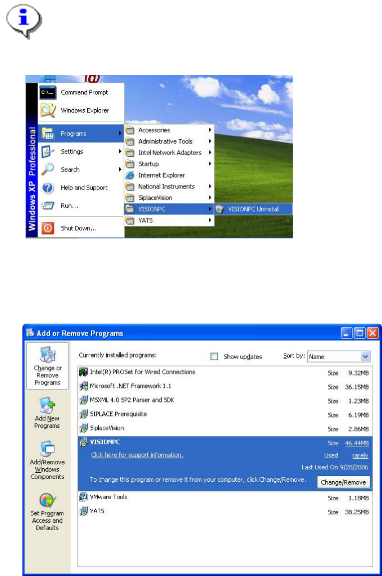 → Open the Start menu and choose Programs Æ VISIONPC Æ VISIONPC Uninstall.