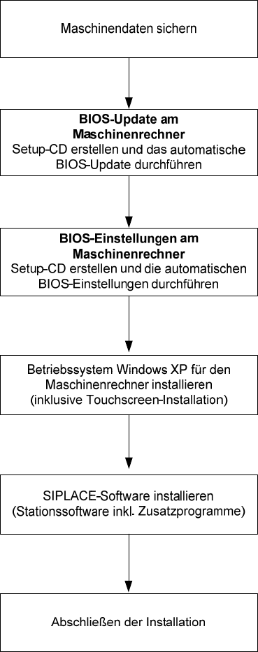Installationsanleitung Stationsso ftware Version 701.02 Ausgabe 07/2008 4.2 Automatisches BIOS-Up date am Maschinenrechner und am V isionrechner Hinw eis: Die SIPLACE Software 701.02 wurde mit der BIOS-Version V05.01.09 …