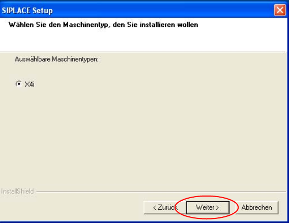 → Aktivieren Sie die Optionsschaltfläche für den Maschinentyp, für den die Software konfiguriert werden