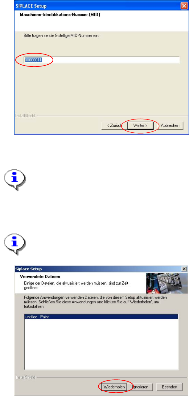 verwenden, die während der SIPLACE-Installation aktualisiert werden müssen.