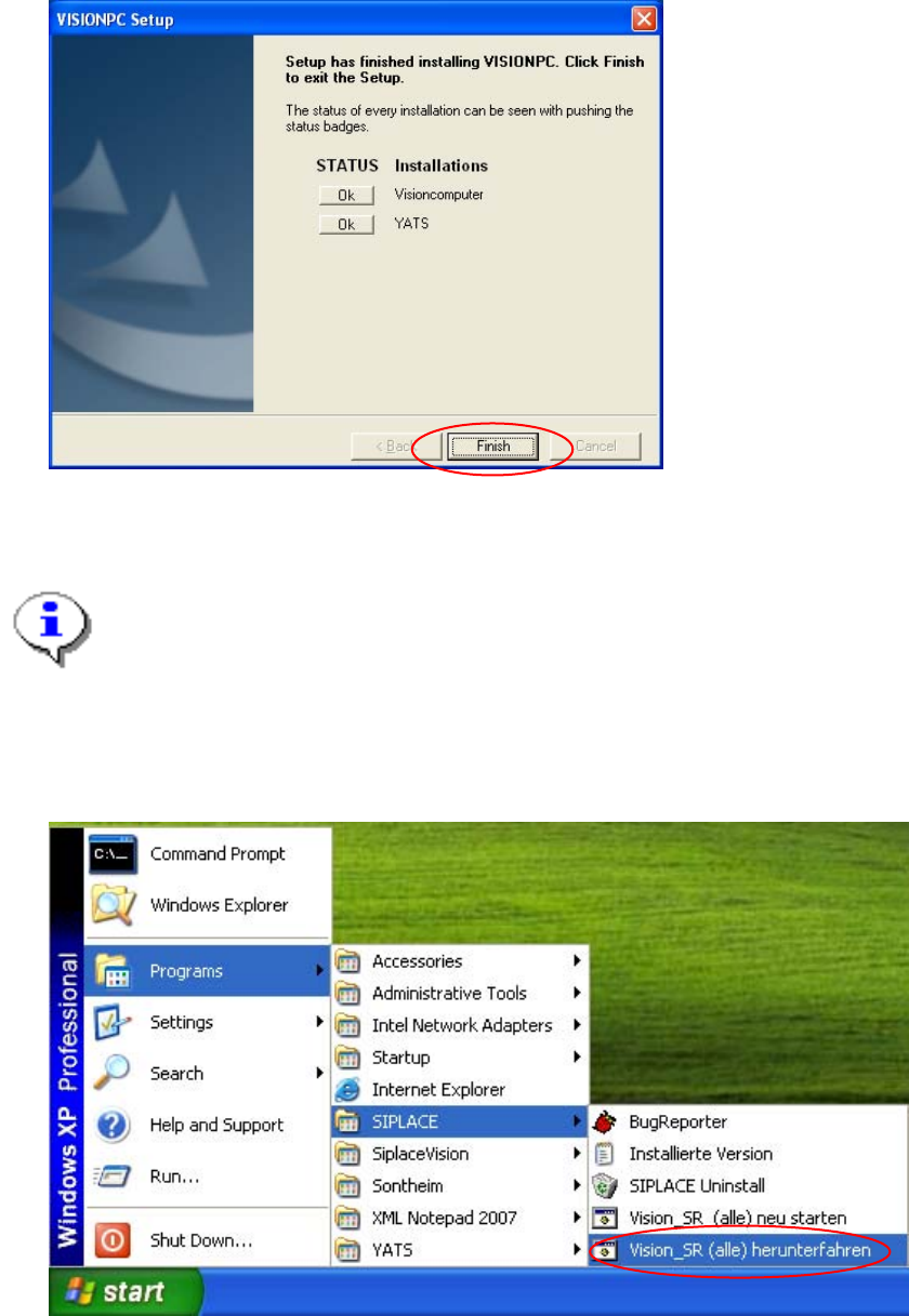 Programs Æ SIPLACE Æ Vision_SR (alle) herunterfahren.