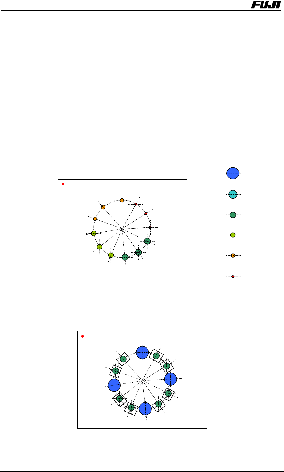 1 .概 要 - 5 - XPF-030706ZS 1.2.4 对应多种多样的元件 自动更换头有“旋转自动更换头”和“ 单吸嘴”可以根据贴装元件的种类 进行自动更换。另外,由于还可以对应 ”点胶自动更换头”所以可以不降 低生产线效率而最大限度的活用工作头 的能力。 1.2.4.1 旋转自动更换头 持有 12 个吸嘴的小型旋转头,吸取元件后移 动到电路板上进行高速贴 装。 1) 小芯片专用吸嘴排列例 吸嘴尺寸φ 0.3 ~φ 2.5mm …