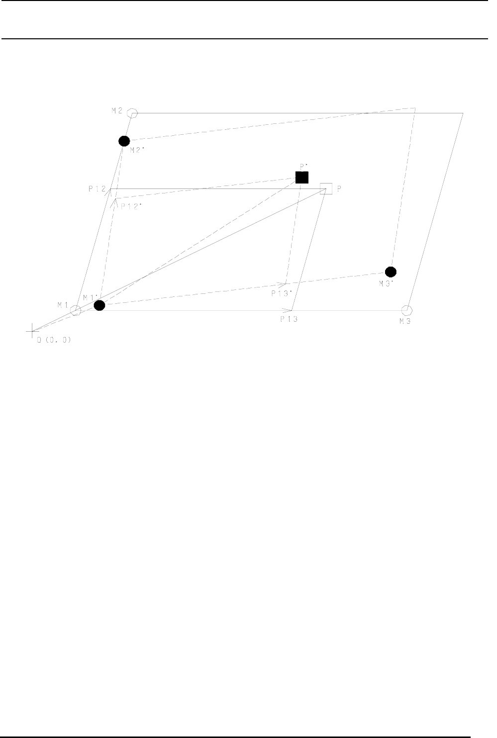 ●显示的M1、M2、M3传,计算对应识装数据上的识装坐标P点(□)的实际识装坐标P点(■)。