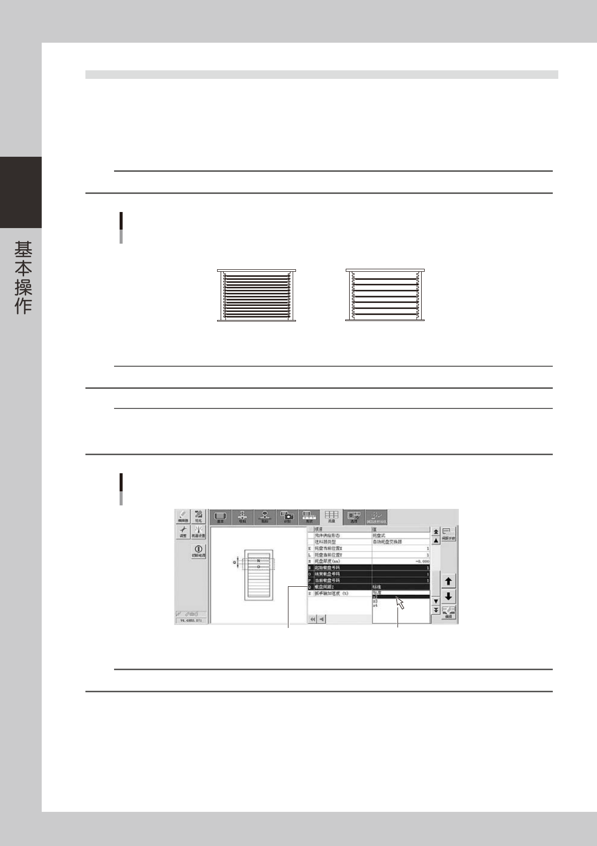 本机无法使用隔 2 层或隔 3 层插入载盘,因此不使用“×3”或“×4”的“载盘间距 Z”设置。