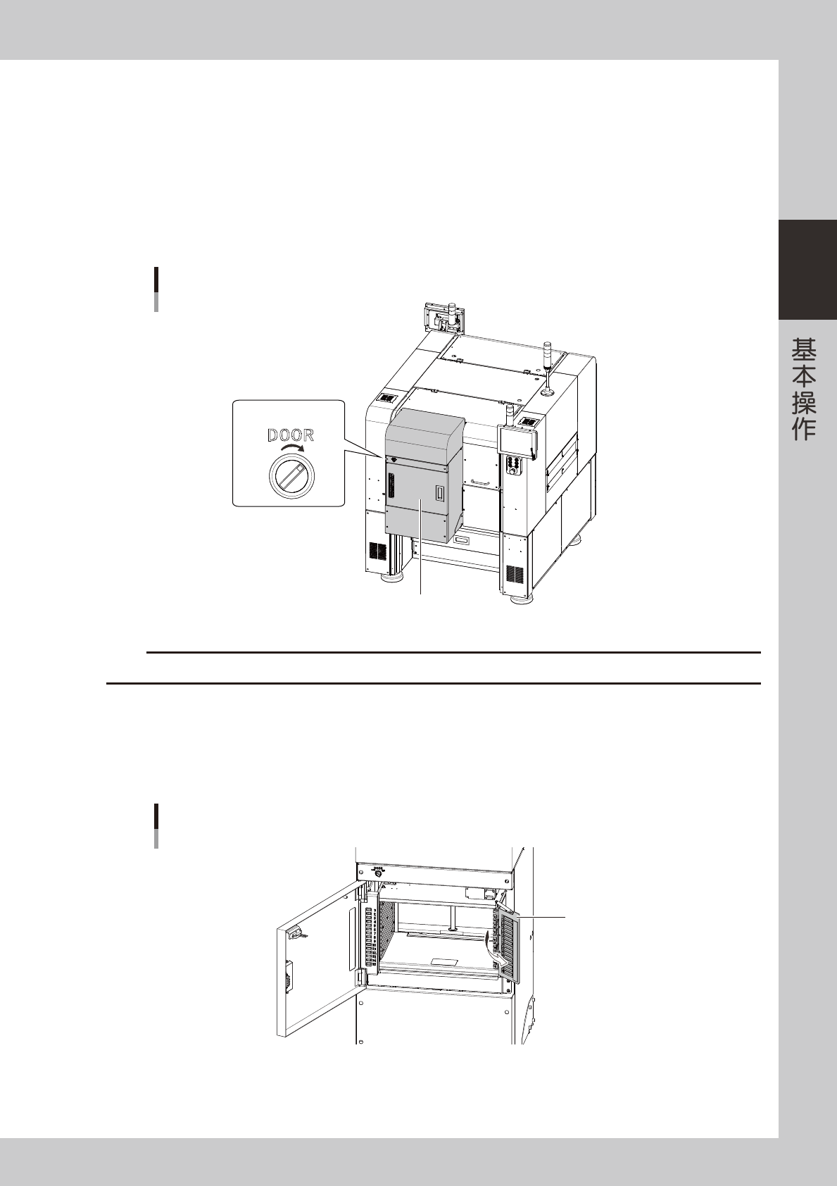 2-59 2 6.2.2 载盘的更换 sATS15 的载盘可以在伺服为使能的状态下更换。下面,介绍更换载盘的方法。 1 确认贴片机为伺服使能状态。 贴片机处于紧急停机状态时,需解除紧急停机状态之后,按 [READY] 按钮。 2 将 柜门开关旋至“OPEN” 。 柜门的锁定状态被解除。 OPEN CLOSE 将柜门开关旋至“OPEN” 柜门 柜门开关 25227-KMG-00 c 注意 若在自动运行过程中将柜门开关旋至“OPEN”侧,会…