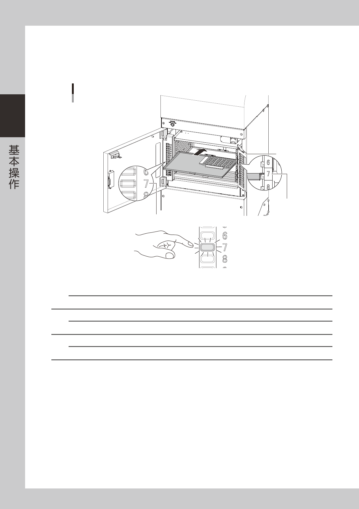 1. 确认柜层之后,将载盘的抽出部朝向里插入,直至轻抵装载柜里侧。