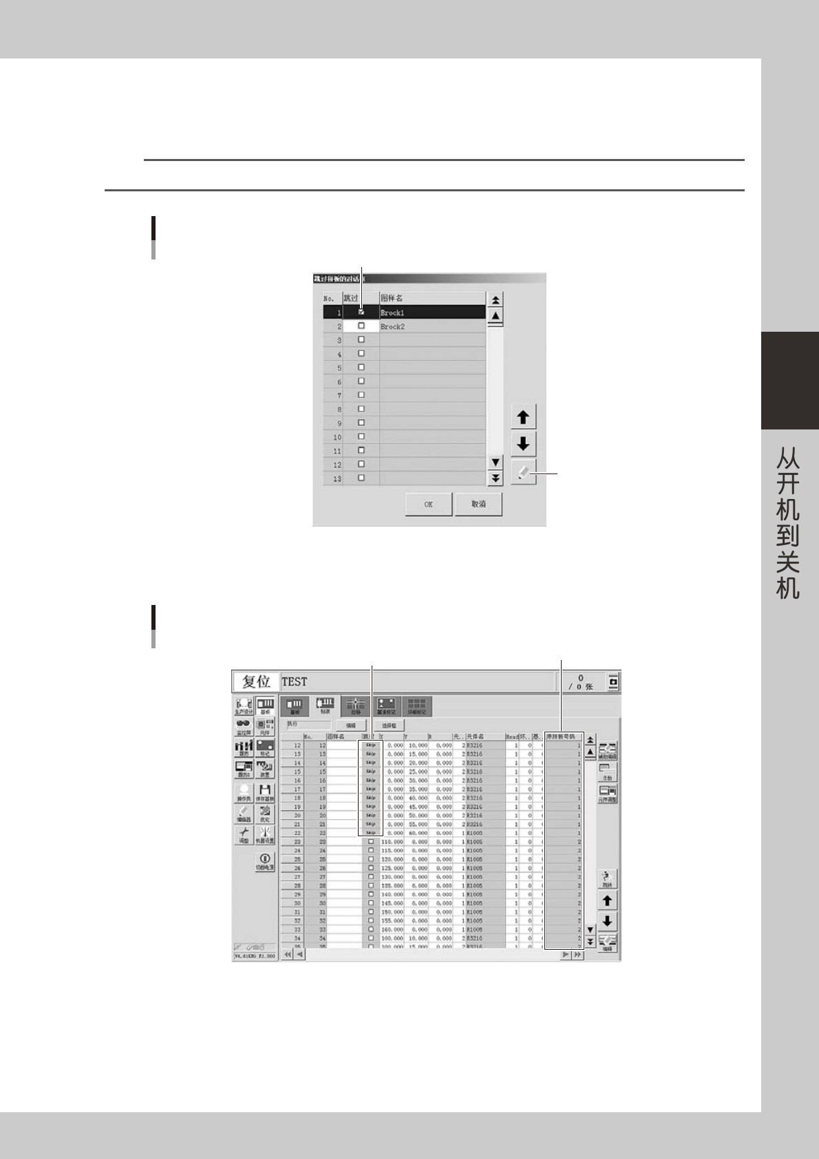 使用。与“中途开始运行”功能类似的还有“跳过拼板”功能,以拼板为单位指定贴装元件或跳过贴装。