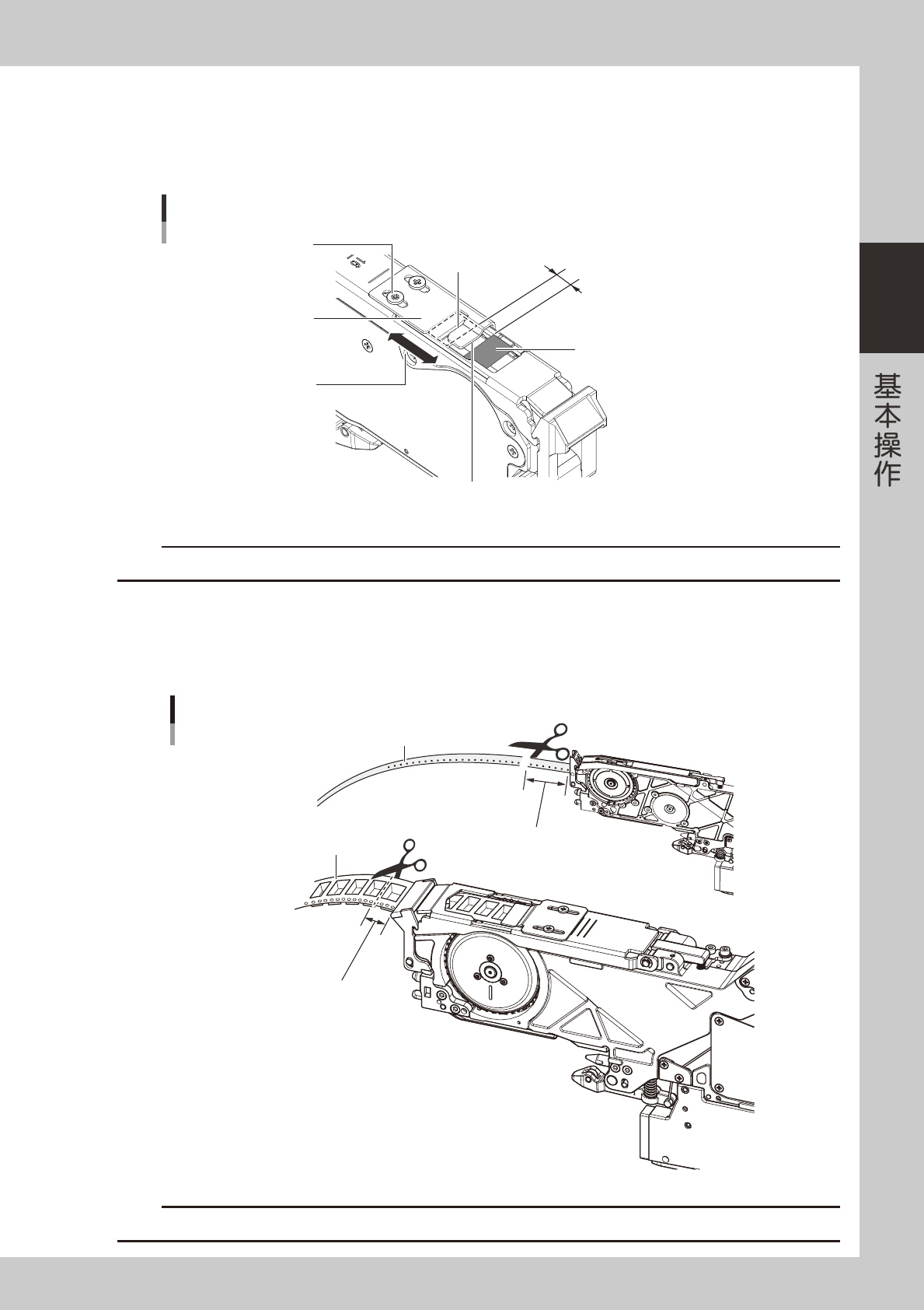 将元件传送到吸附位置后,先将伸出送料器前端的载带在距离送料器前端 10 〜 15mm 的位置处剪断,再