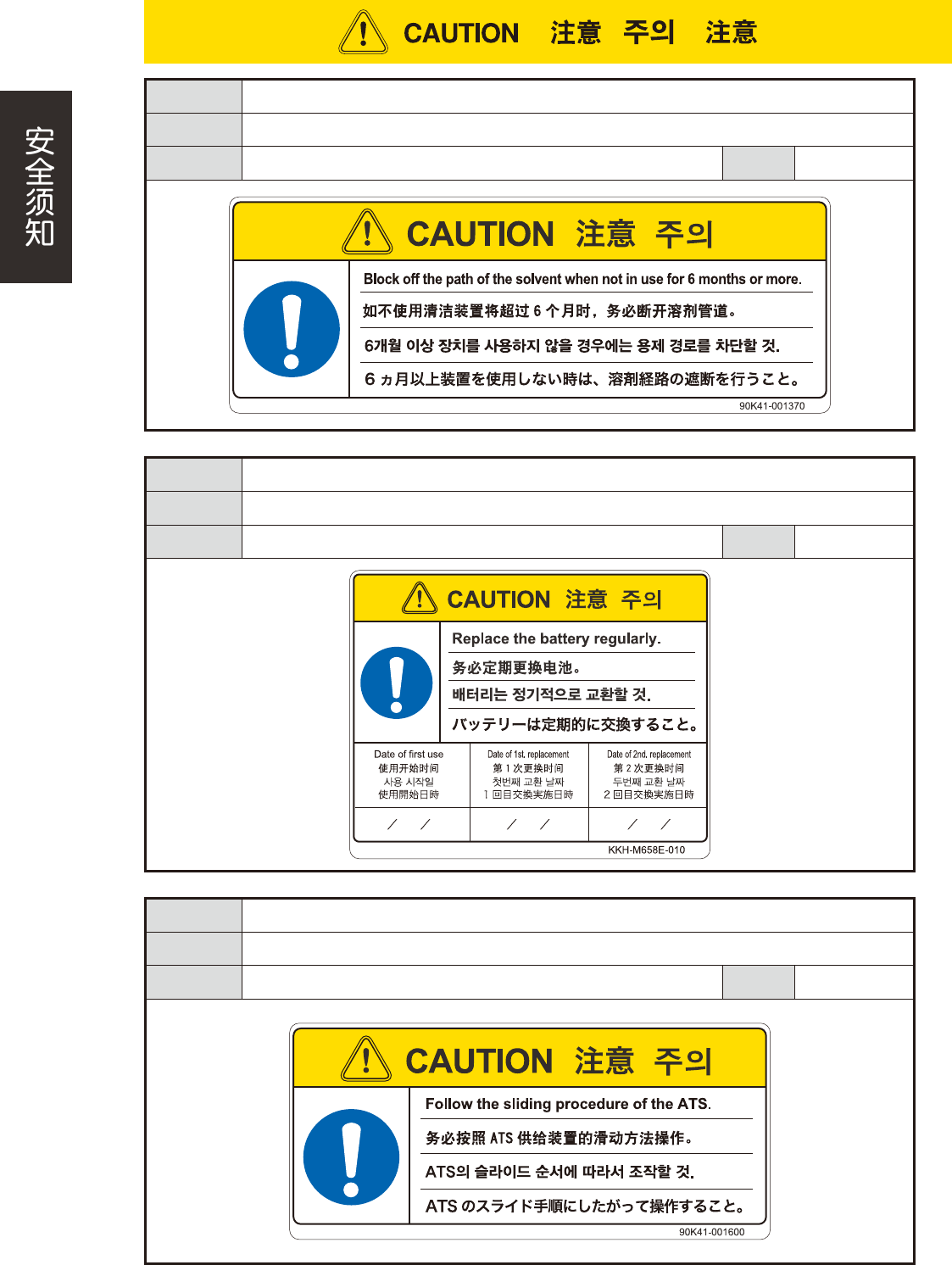xxv 危险结果 可能会导致设备被损坏 ( 与贴装头发生碰撞等 )。 安全防范 确认一次性换料车的盖板上是否放置有物品。 对象 一次性换料车 (YSM40) 警告阶段 生产准备 危险结果 载带与贴装头接触,可能会导致设备被损坏。 安全防范 从送料器安装位置拔出送料器时,必须完全拔出后再插回。 对象 YSM10、Z:LEX(YSM20/YSM20W)、YSM40/YSM40R 警告阶段 生产准备 危险结果 直接在元件补充台上补充元件,可能…