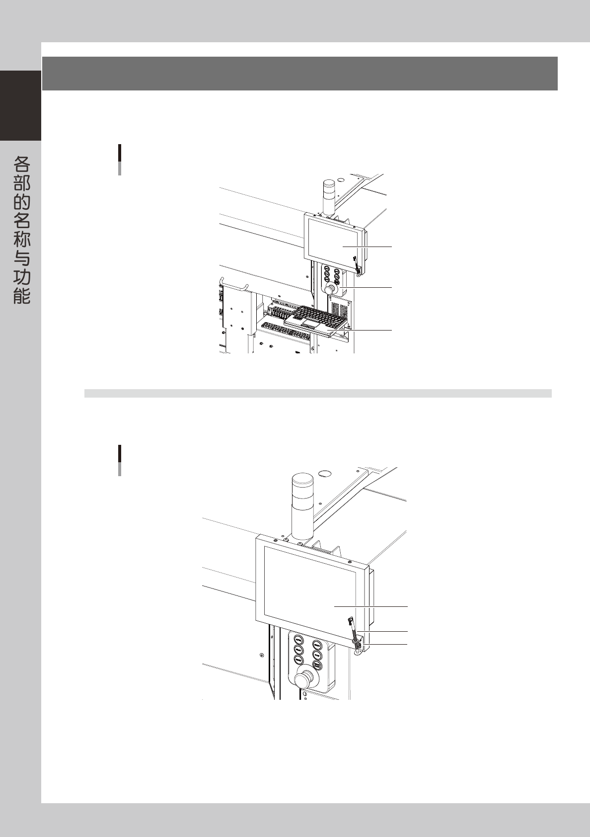 贴片机的正面和背面装有操作机器、输入数据时使用的操作面板按钮、操作显示屏 ( 背面的为选配 )。