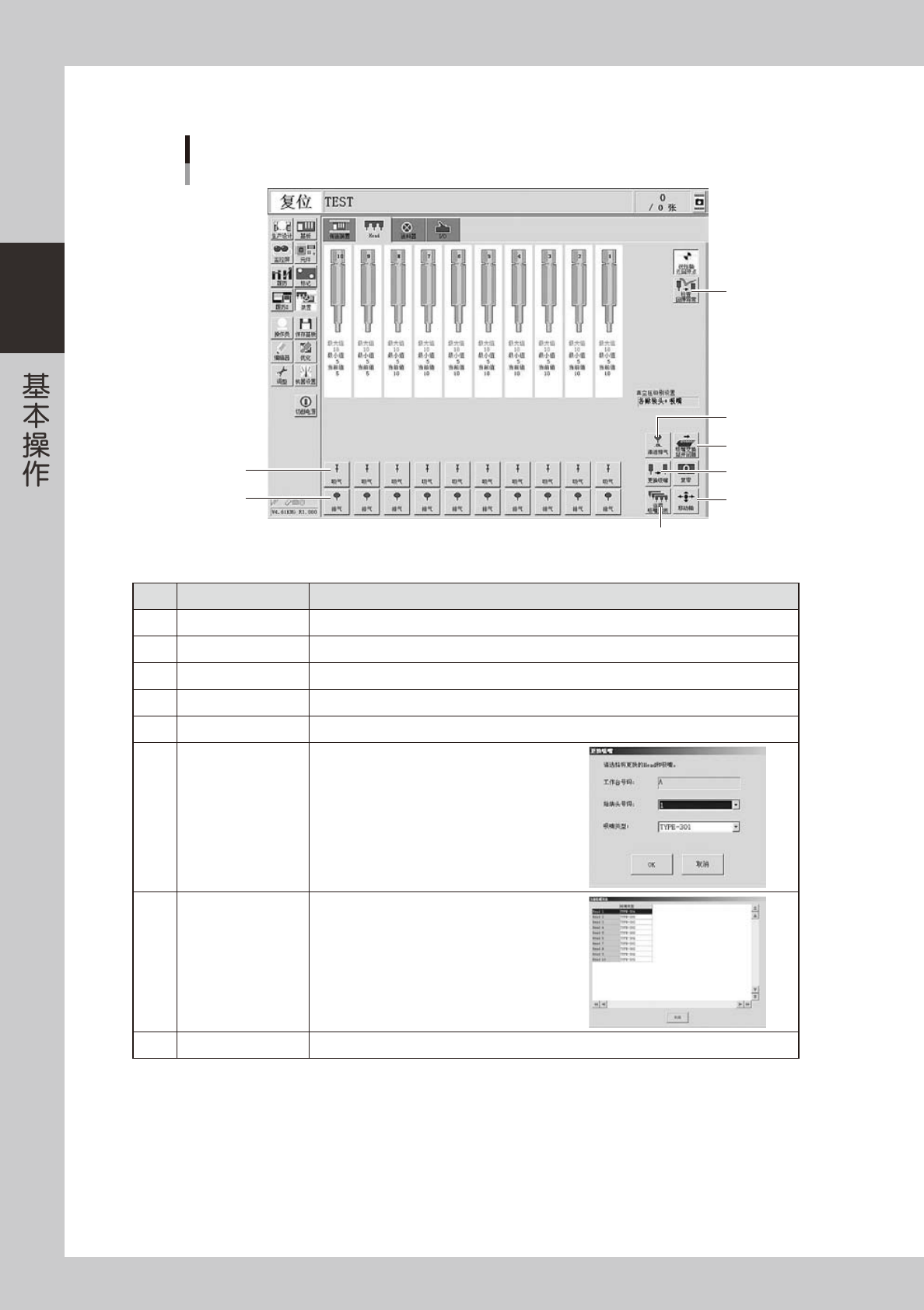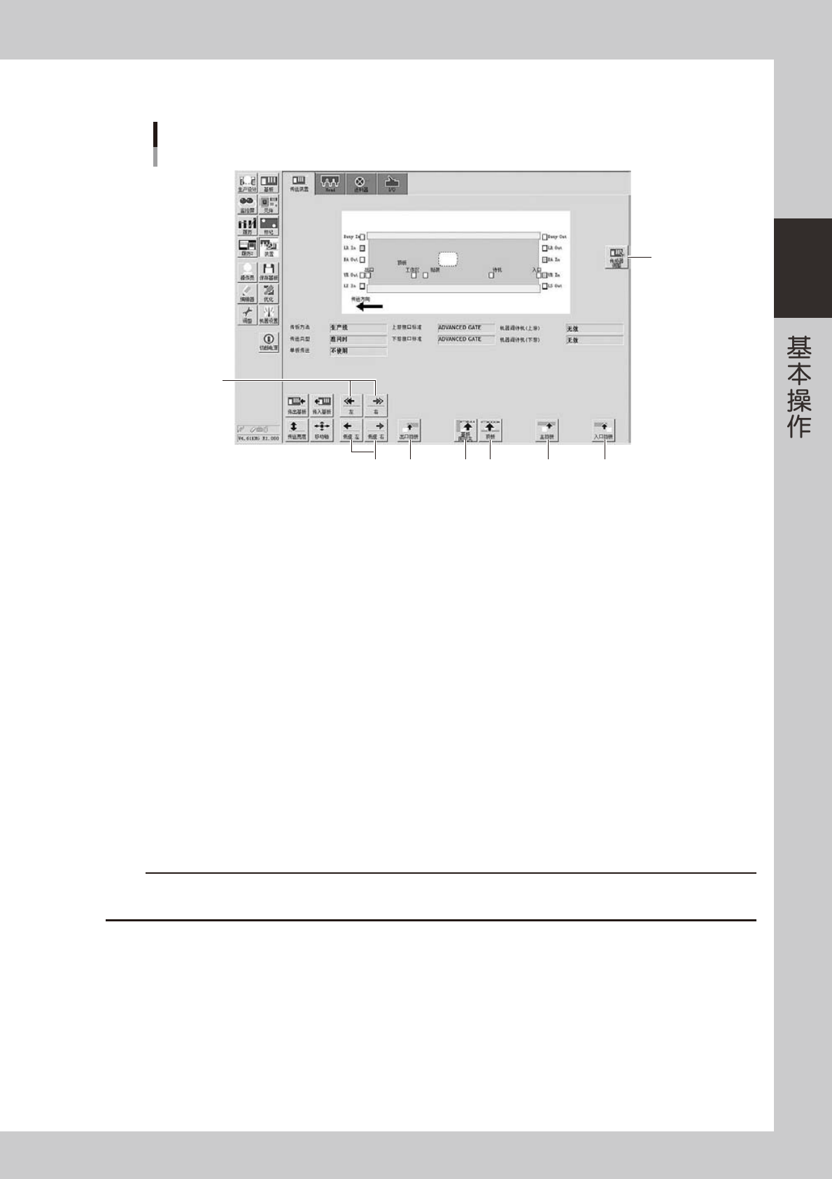 2-15 2 ■ 传送装置手动操作 2 5 12 6 7 8 9 11 10 “装置”画面 “传送装置”选项卡 26207-KMG-00 5. [ 左 ]、[ 右 ] 按钮 使电机向左或向右高速转动。 6. [ 低速 左 ]、[ 低速 右 ] 按钮 使电机向左或向右低速转动。 7. [ 出口挡板 ] 按钮 使传出的基板停在出口位置时使用。 8. [ 基板固定夹 ] 按钮 使基板固定夹上升或下降。从下方 ( 基板背面 ) 夹住基板的边缘来…