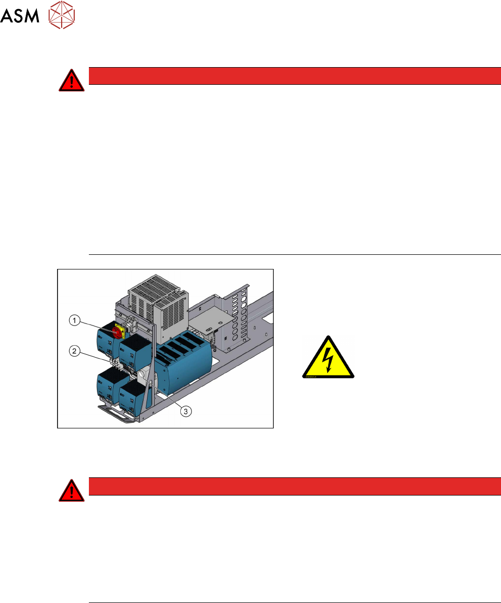 ► Work on the power supply and the contactor safety breaker (CSB) must only be car-