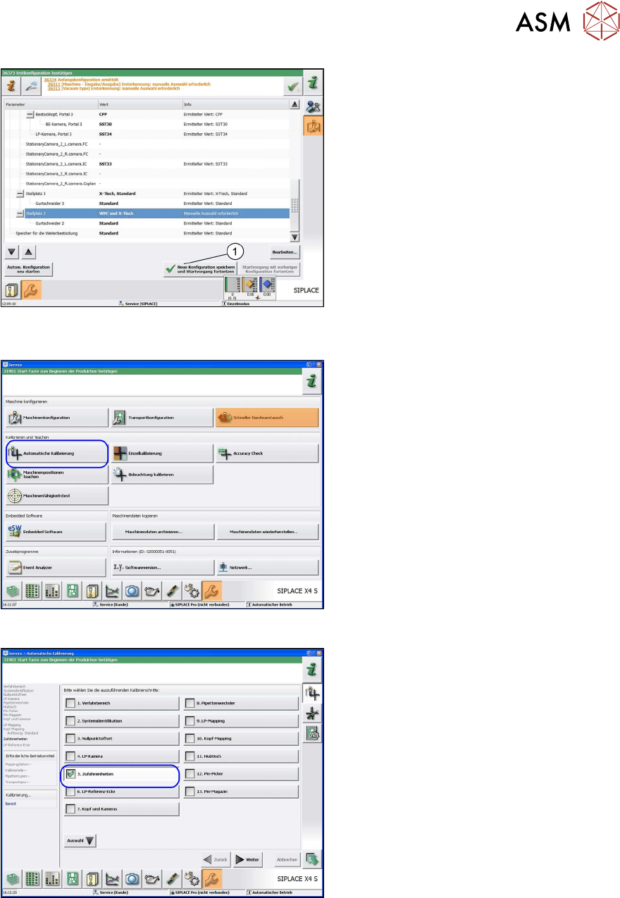 Review 4 Aufgaben für das Bedienpersonal 4.3 Automatische Kalibrierung 42 Assembly Instructions / Montageanleitung SIPLACE WPC an SIPLACE X-Serie S SIPLACE WPC on SIPLACE X Se- ries S 03/2020 Abb.46: Zuführeinheiten kal…