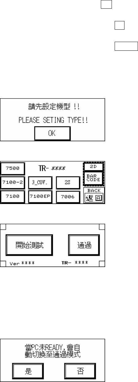 鍵(需間隔兩秒內),則可顯示出機型及條碼設定畫面如圖 1.22。