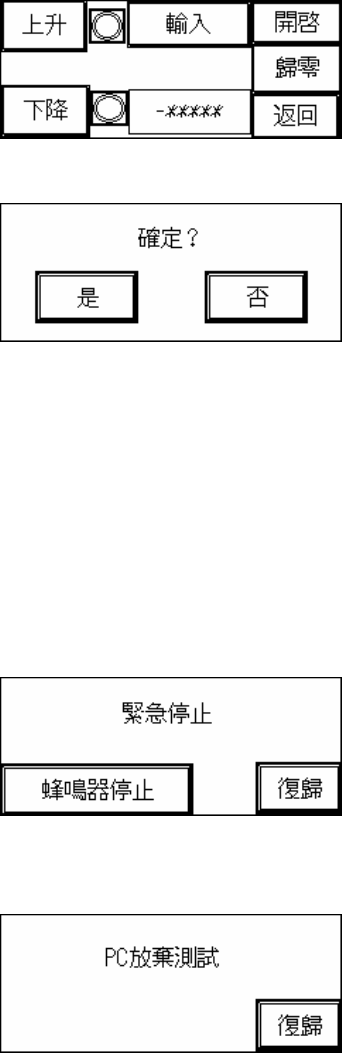 2.5 夾板(圖 2.14):按夾板上升或夾板下降可分別測試夾板是否動作正常;按返回畫面會跳回