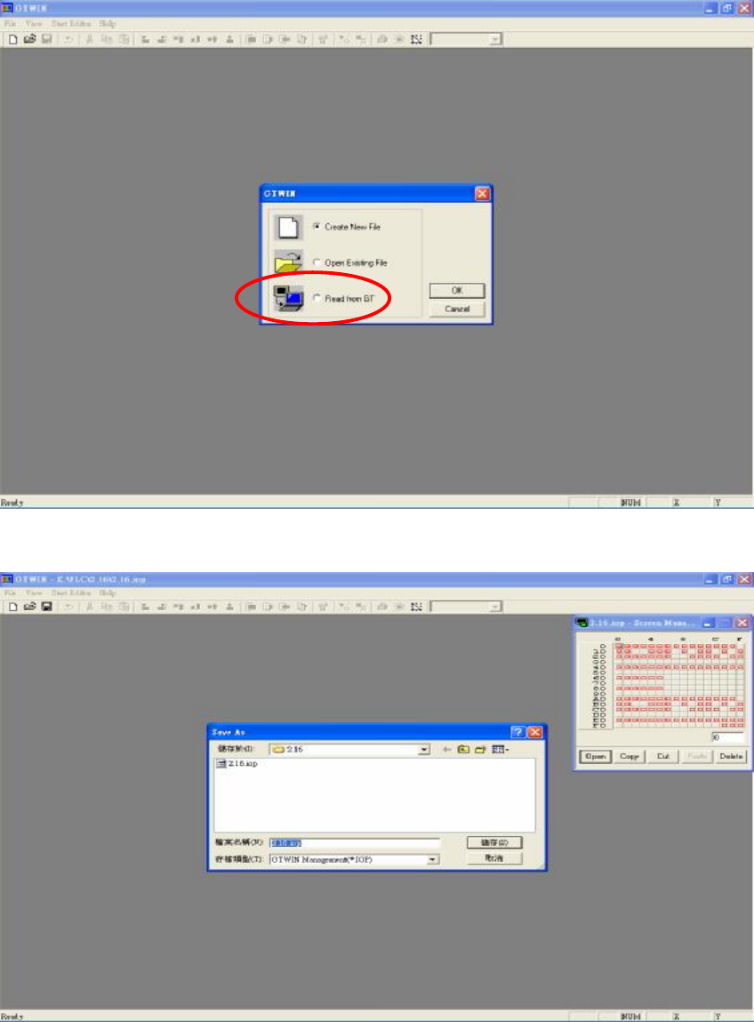 步驟3 :進入 GTWIN 軟體程式,如下圖所示,點選 Read from GT(讀取人機介面的資料)。