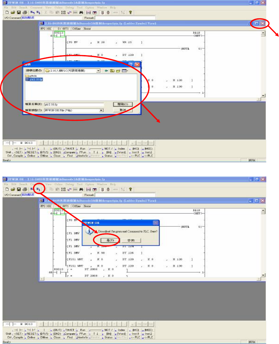 步驟5:備 份 後,將 原 本 的 PLC 程式關閉,再點擊 File 選擇 Open 開啟欲更新的人機介面程式( *.fp),