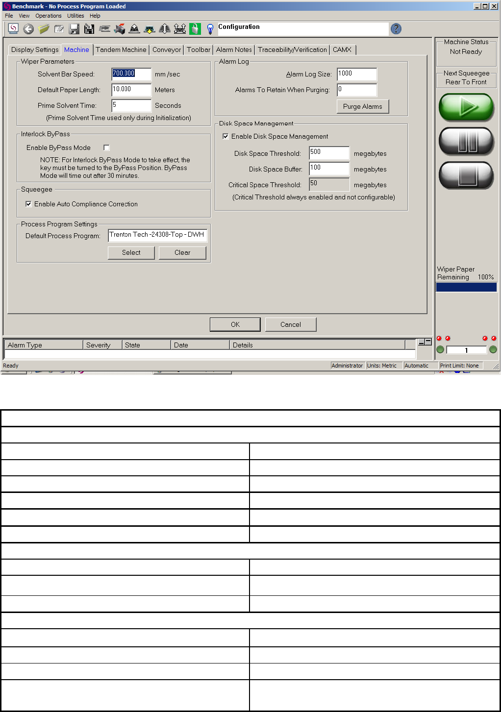 图 -3.3 Machine 机台选项 W iper Parameters 擦拭参数 Solvent Bar Speed 溶剂棒转速 Default Paper Length 擦拭纸的长度 Prime Solvent T ime 初始化时喷溶剂时间 Enable ByPass Mode Bypass 模式选择,同时钥匙在 Bypass 位置才有效。 Enable Auto Compliance Correction 刮刀自动校正功能 D…