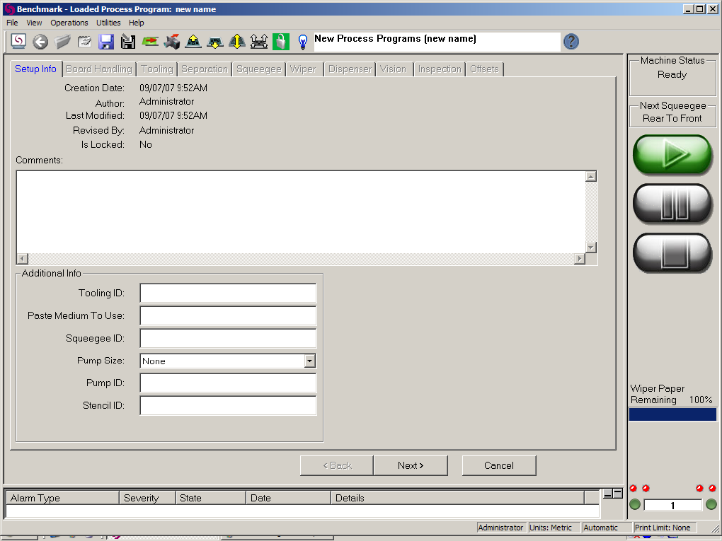 4.3.Setup Info:在这个页面输入一些关于当前程式的相关备注信息,这里的内容与机台动作无关并可以不设定直