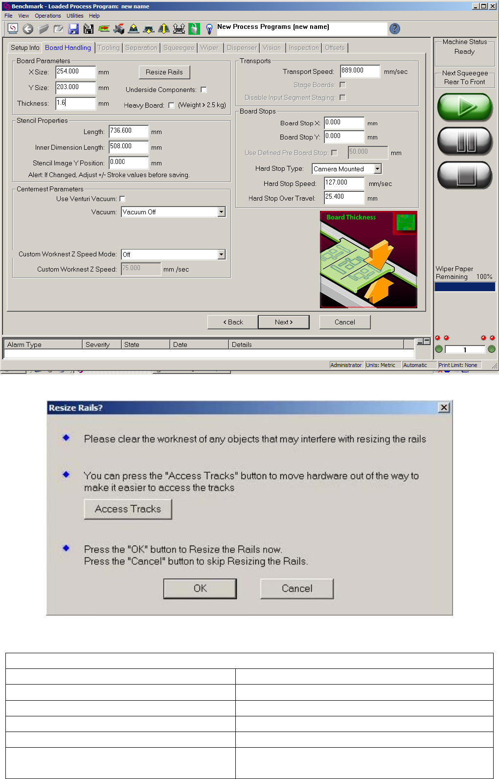 图 -4.4 4.4. Board Handling: 首先输入 PCB 尺寸参数,然后点击“ Resize Rails ”出现图 -4.6 。如果需要清理轨道请点击 “ Access T racks ” , 点击 “ OK ” 马上调整轨道宽度。 其余设定参考表 -4.2 说明依不同情况进行设定, 如果此页 OK 点击“ Next ”下一步至 T ooling 页面(图 -4.7 ) 。 Momentum 中文操作说明 1 7 / 6…