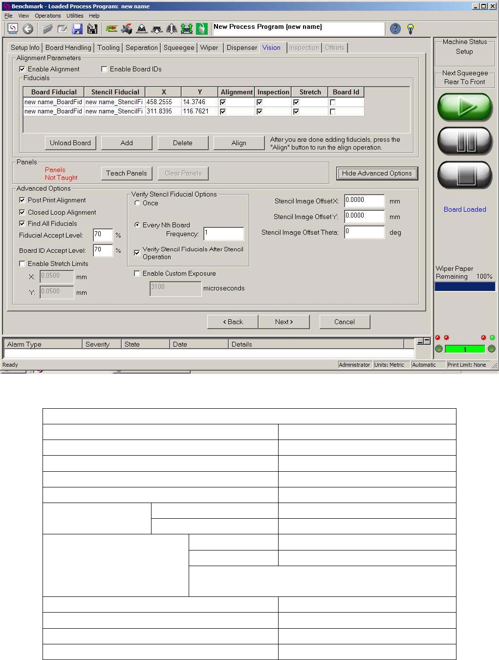 的提示让你重新放一次钢网,记住要让钢网的边靠到钢网定位柱。“OK”回到 Vision 布面。