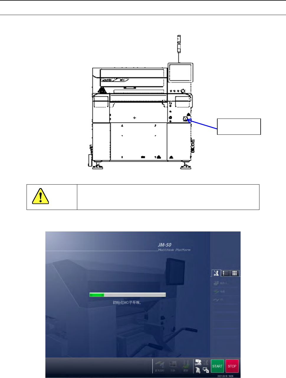 第 1 部 基本篇 第 2 章 生产 2-5 2- 3 设备的启动和 退出 2-3- 1 设备的启动 (1) 向右旋 转主机正面中央 的「 主开关 」 , 接通电源。 注意 在系统 完全退出之前, 请勿关闭 主开关,否 则会导致 SSD 故障。 (2) Wi ndows 启动 后,会 显示以下启 动 画面。 主开关