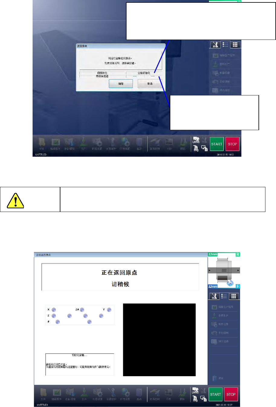 (3) 初始设置结束后会显示主画面,在画面上显示返回原点画面。