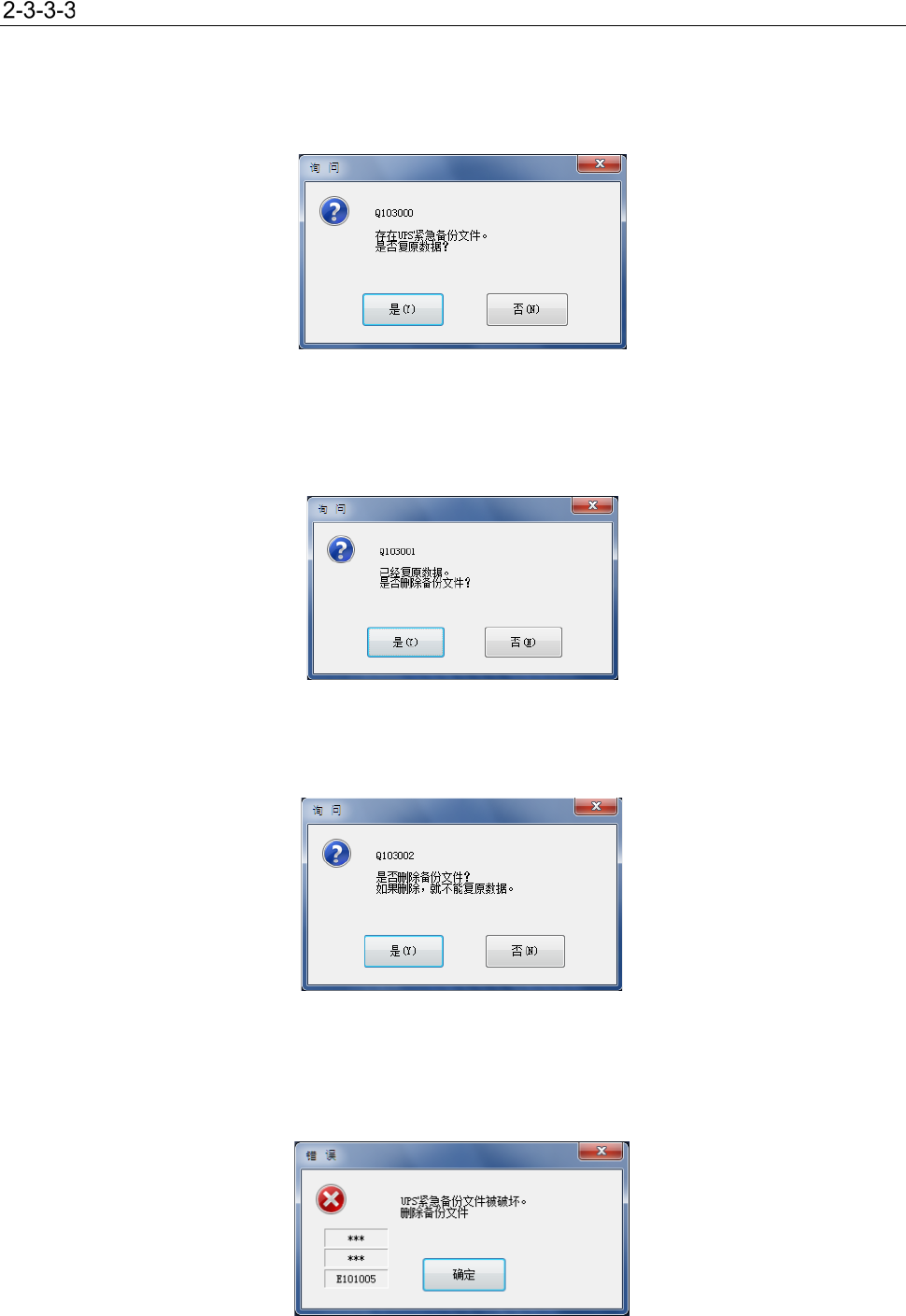 (1) 检测出停电对策用的保存文件时的确认显示