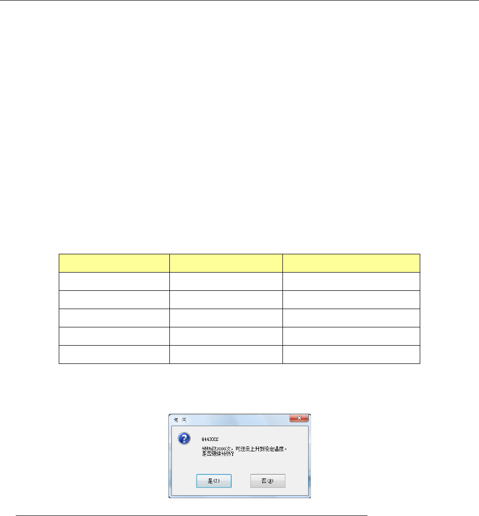 达不到所设置温度时,每进行 3000 次预热操作,会显示询问是否要持续进行预热操作的画面。