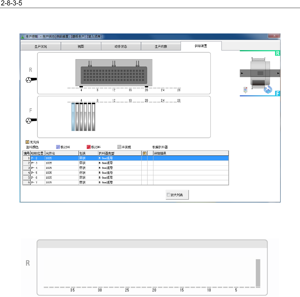 在供料器确认画面的上半部分,通过示图显示现在的生产程序所使用的供料器状态。