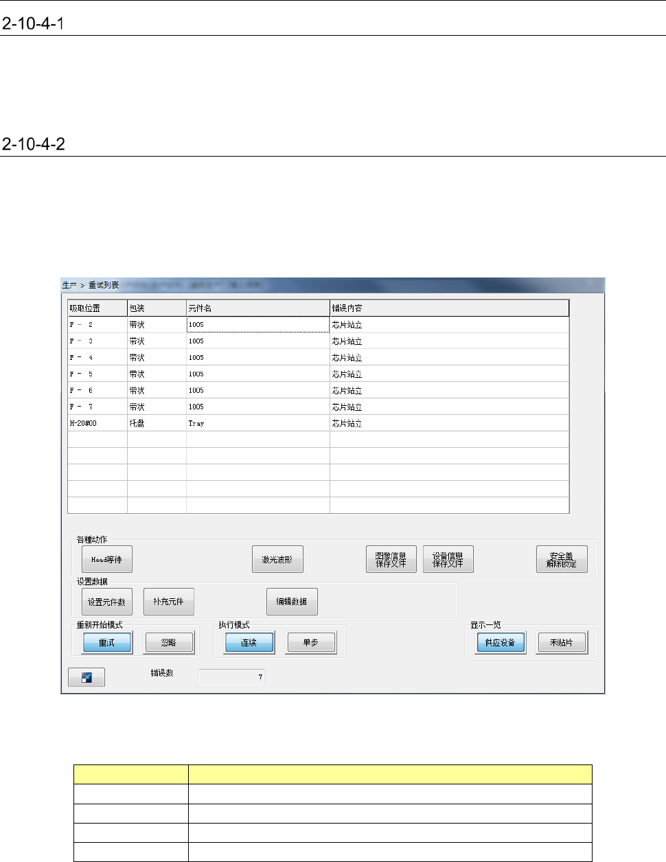 生产中发生重试错误时会显示重试错误,以供判断是继续生产、还是中断生产。