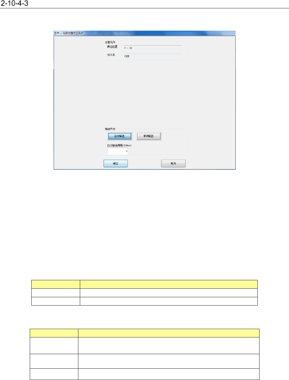 可以按此画面指定的条件进行吸取跟踪,校正该吸取位置。