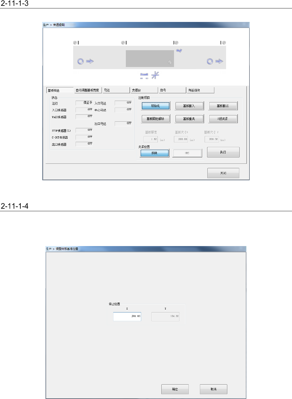 在传送通道状态画面显示后,执行传送动作,进行马达、支撑台等有关控制。