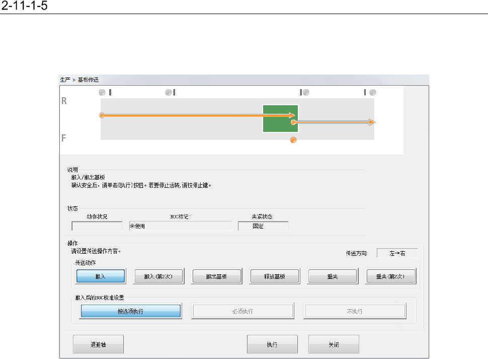 按下执行按钮,执行[基板搬入]、[基板搬出]、[释放基板] 、[重夹]动作。