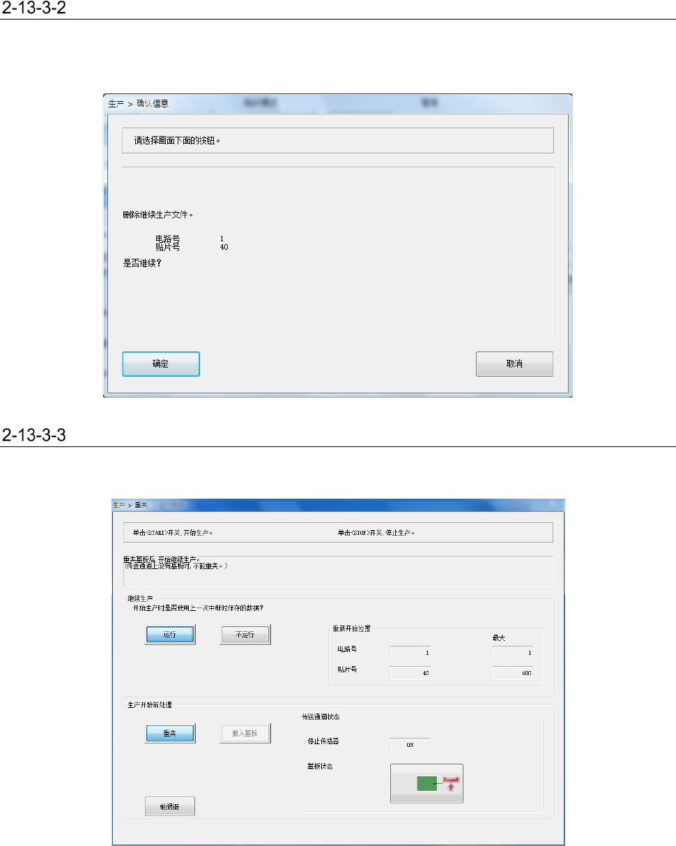 开始继续生产前,传送通道上有基板时,即显示基板重夹画面。