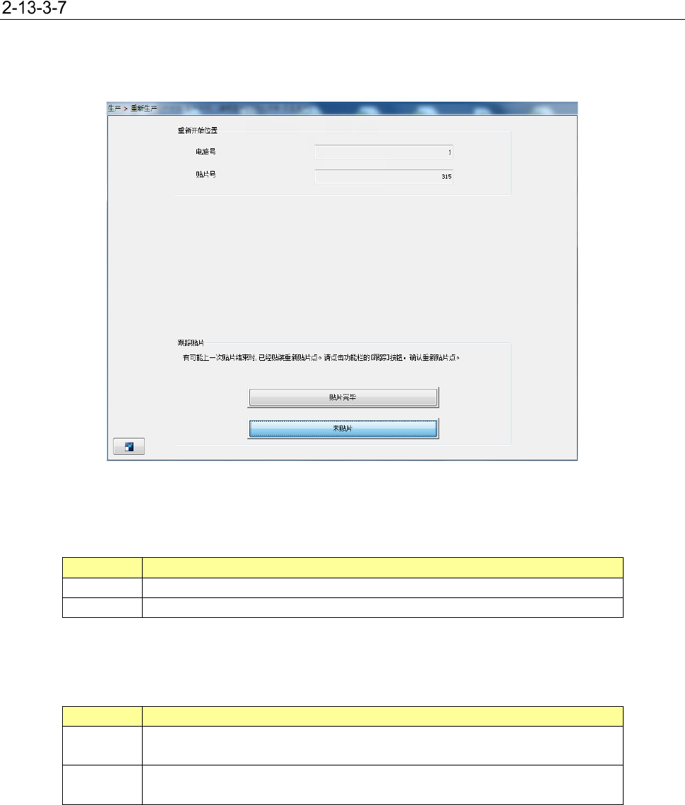 按「不传送基板的生产」再开始生产时,由于对生产中断时传送通路的状