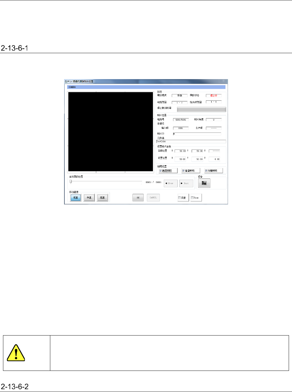 另外在试打和空打时,如在生产条件画面设置中选择了[摄像机跟踪贴片]选项中的[手动输送]或[自动输